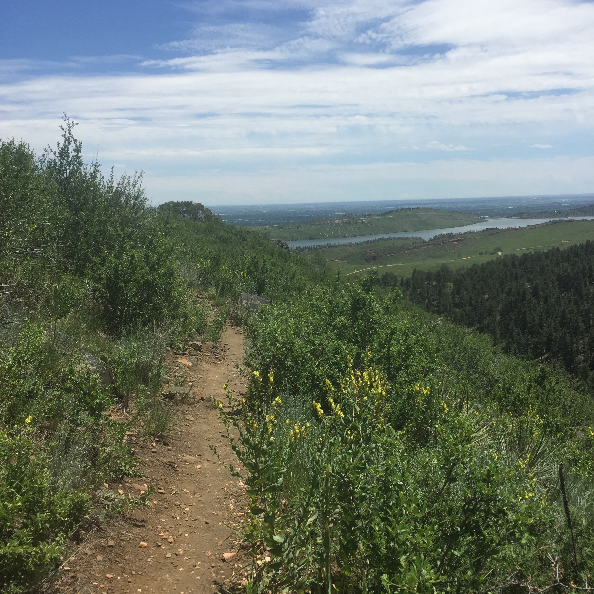 I arrived at Towers in time for the fantastic volunteers to fill my water, and catch Molly and her new friend, Tony, for the descent to the Horsetooth aid station.  This was a nice little trail down the valley, with some rolling hills along the way.  I was able to keep up the whole way to Horsetooth, which was nice.  It would have been wonderful to stop and enjoy the views – it was a beautiful trail – but there was no time to linger.  As Tony kept telling us all day… “no lingering!”  I loved that guy and hated him at the same time.